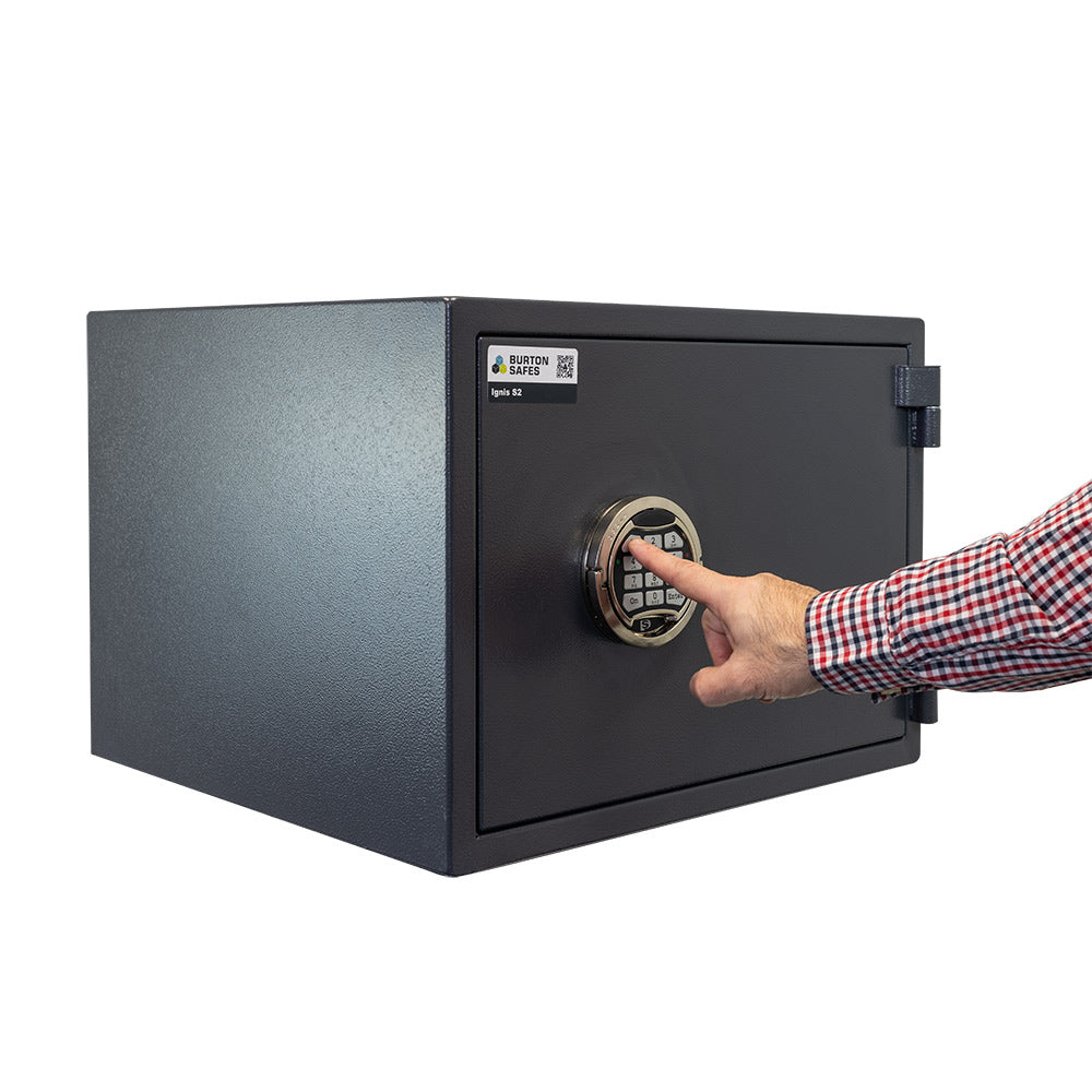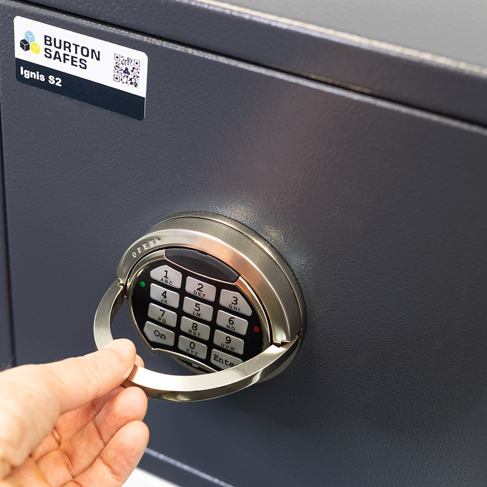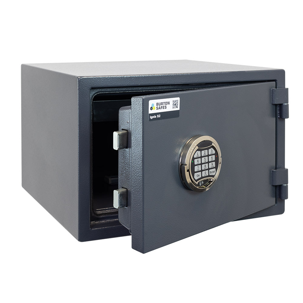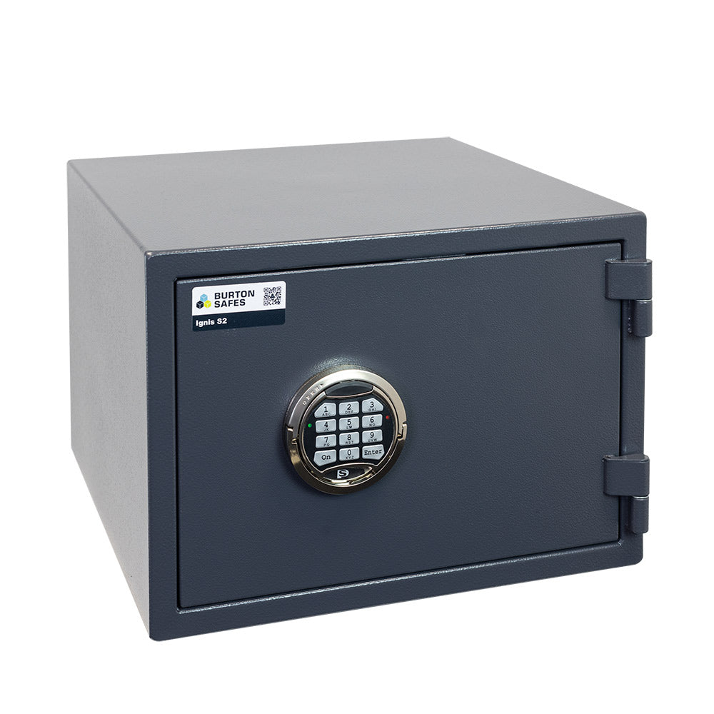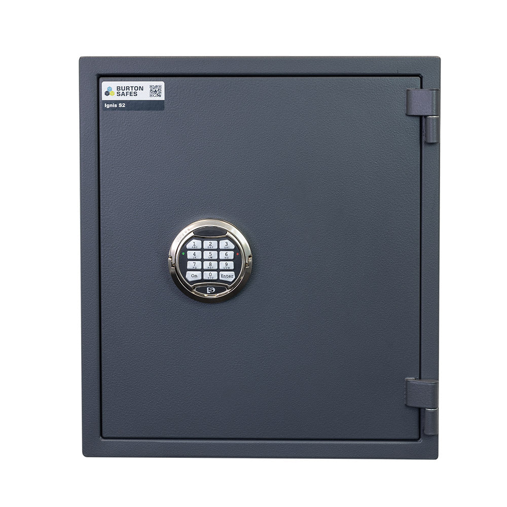 The Burton Ignis Home Fire Safe benefits from a £4,000 cash rating. Or valuables rating of £40,000 for jewellery. It has been certified by ECBS to EN14450 S2.It is also certified to the well respected NT 017-60P standard. This is a fire test and means the Ignis has 60 minutes fire protection for paper.