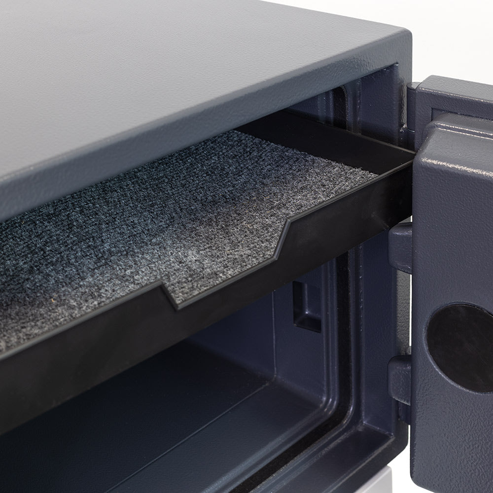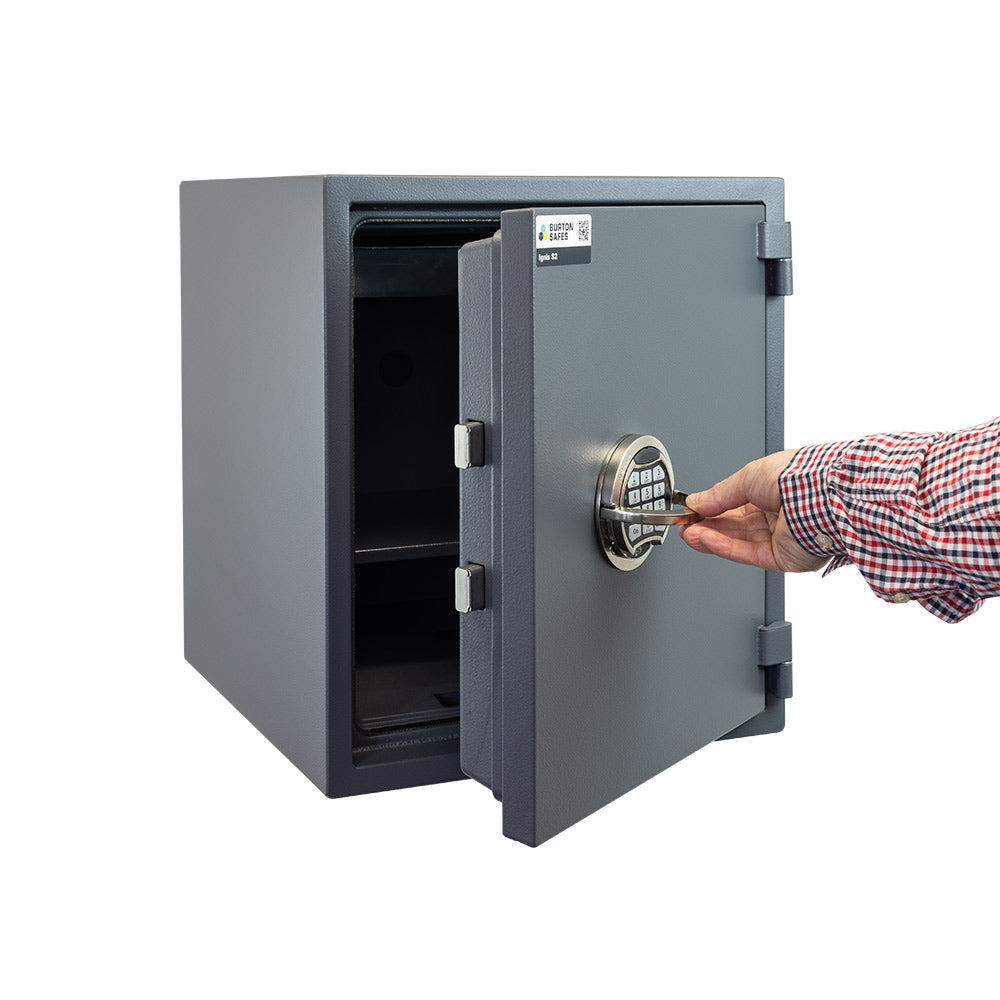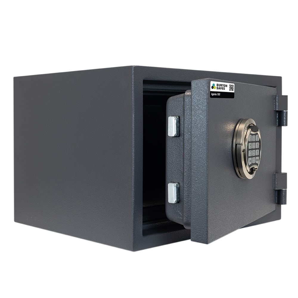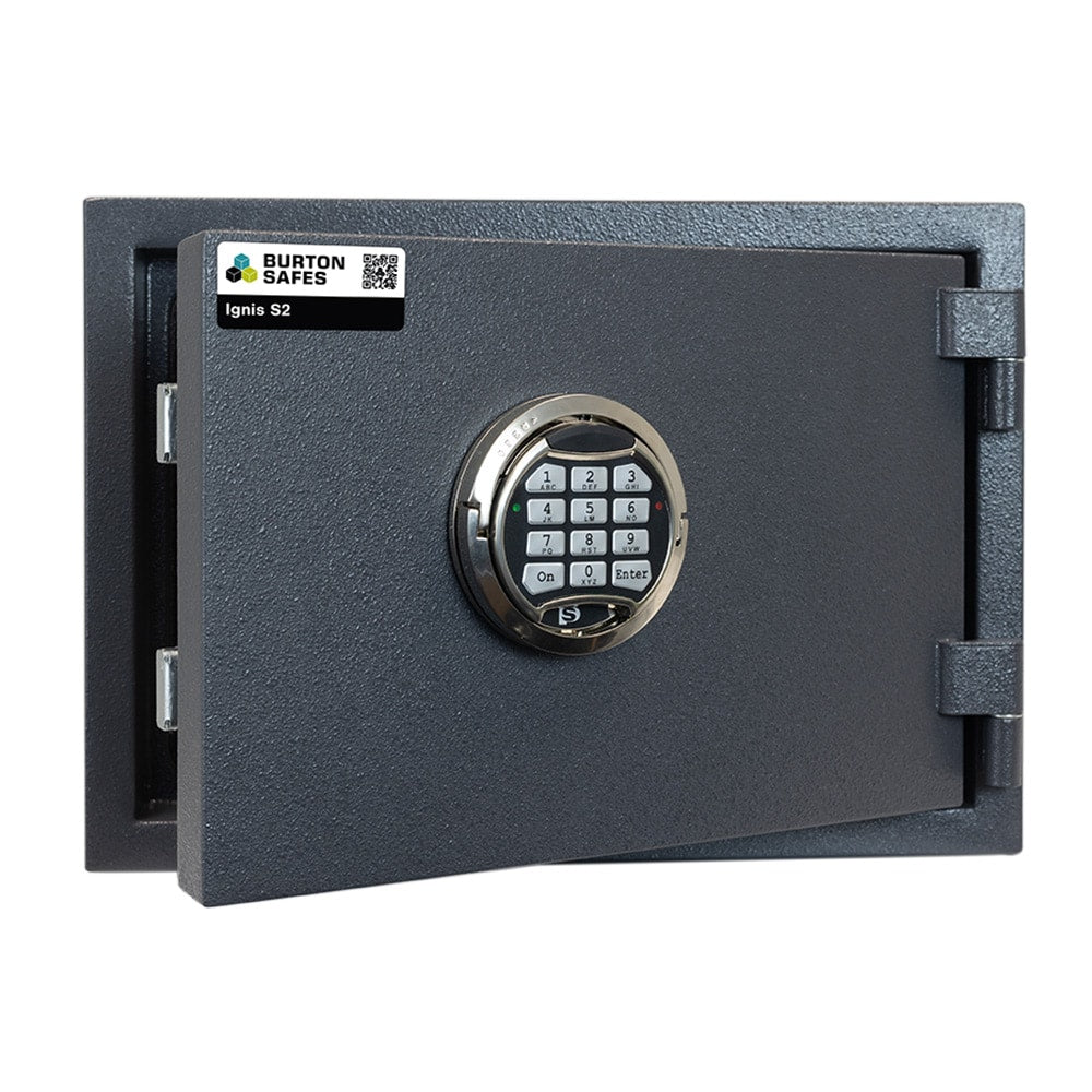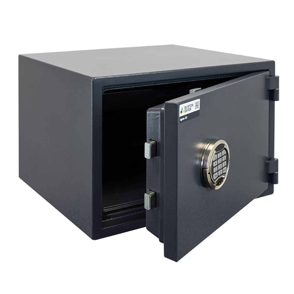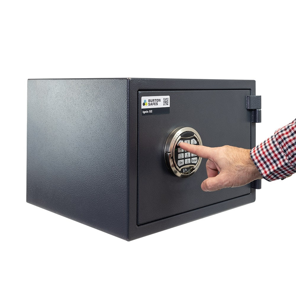 The Burton Ignis Home Fire Safe benefits from a £4,000 cash rating. Or valuables rating of £40,000 for jewellery. It has been certified by ECBS to EN14450 S2.It is also certified to the well respected NT 017-60P standard. This is a fire test and means the Ignis has 60 minutes fire protection for paper.