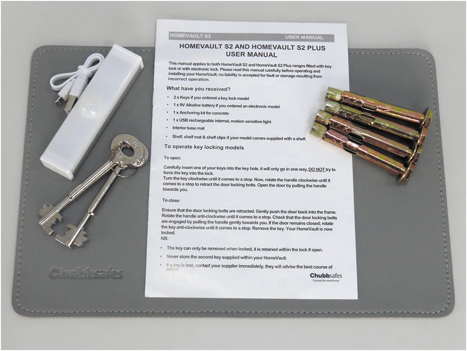 Chubbsafes HomeVault S2 Plus- Key Locking Fireproof Safe