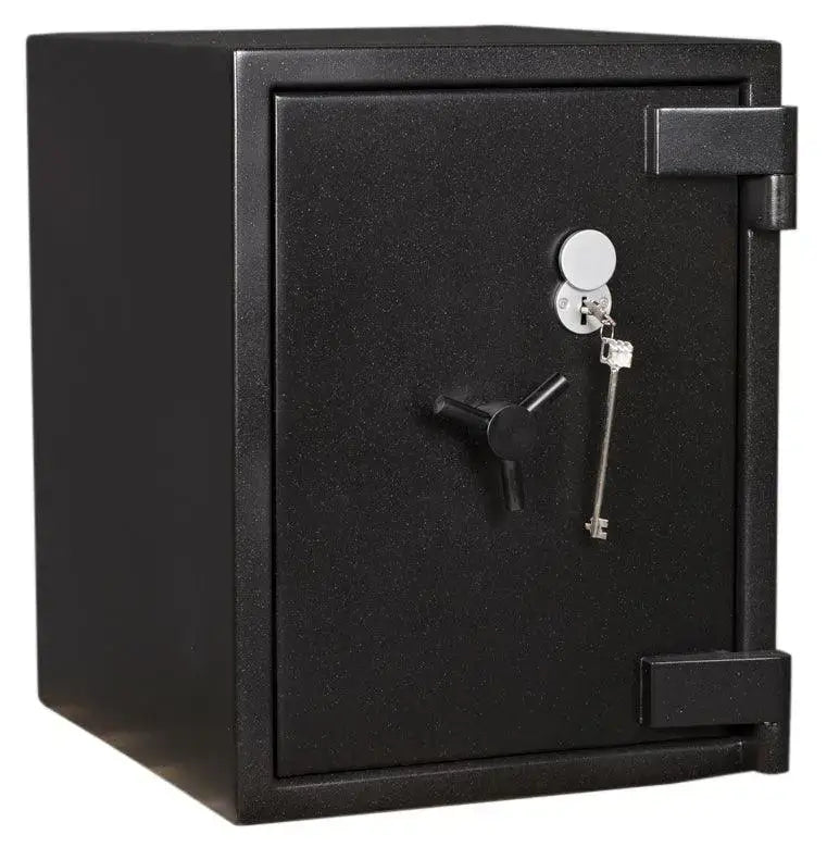 Very solid and heavy-duty burglar and fire-resistant safe. European certified class Grade I and 60 minutes fire protection. Equipped with a double-bit key lock as standard. Upgrade to electronic code lock or double locks possible.