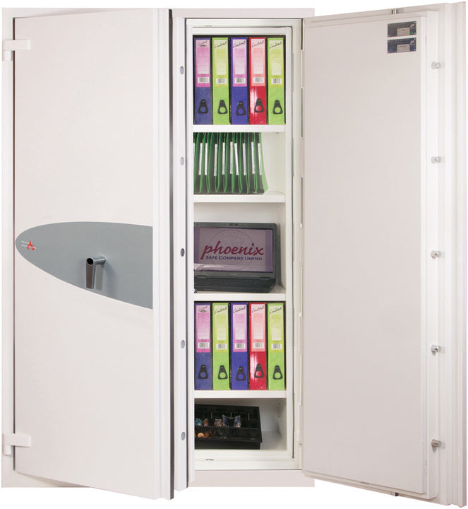 This Phoenix Fire Commander is comprised of a tall single-door cabinet featuring a High Security Electronic Lock that provides 120 minutes of fire protection for paper documents. This cabinet is subjected to rigorous testing in order to comply with NT Fire 017-120 and MTC DIP120-60DIM standards, and when used with the optional FSDP103 Data Box, it increases the resistance to fire up to 60 minutes for digital media. With its insurance rating of £2,500 for cash and £25,000 for valuables, this Phoenix Fire Commander is perfect for protecting, securing, and storing paper documents, exam papers, bulky items, and digital media. Furthermore, when bolted down, it is suitable for exam paper storage for JCQ and International Baccalaureate. Also available with Key Locking.